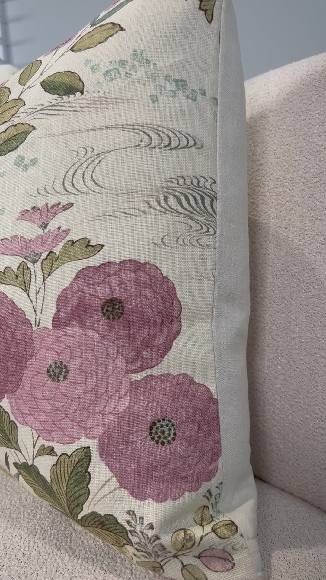 Soft, romantic, and undeniably elegant—this pillow cover brings refined floral beauty into your home. Made from 100% linen Kravet designer fabric, it's a statement piece that layers effortlessly with neutrals or stands beautifully on its own. Handcrafted for timeless sophistication in every stitch.