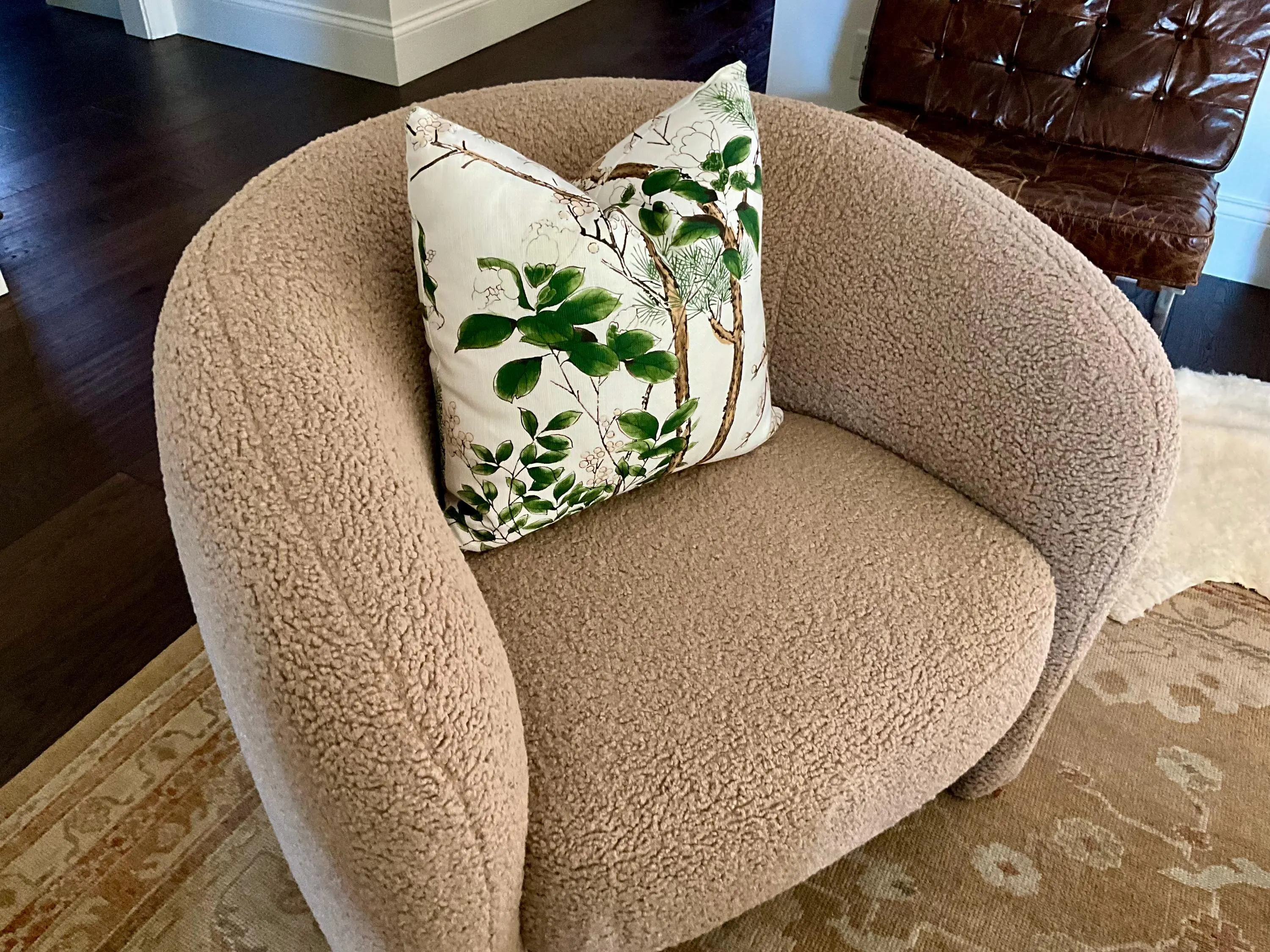 Printed on a luxurious viscose-linen blend, the fabric offers a subtle sheen and refined texture, enhancing the depth and delicacy of the design. Each pillow is individually cut and handcrafted with meticulous attention to detail for a tailored, designer-quality finish.